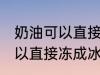 1、奶油不可以直接冻成冰淇淋,奶油是指乳经离心分离后得到稀奶油,经成熟、搅拌、压炼而制成的乳制品。奶油是以乳脂肪为主要成分,营养 ....